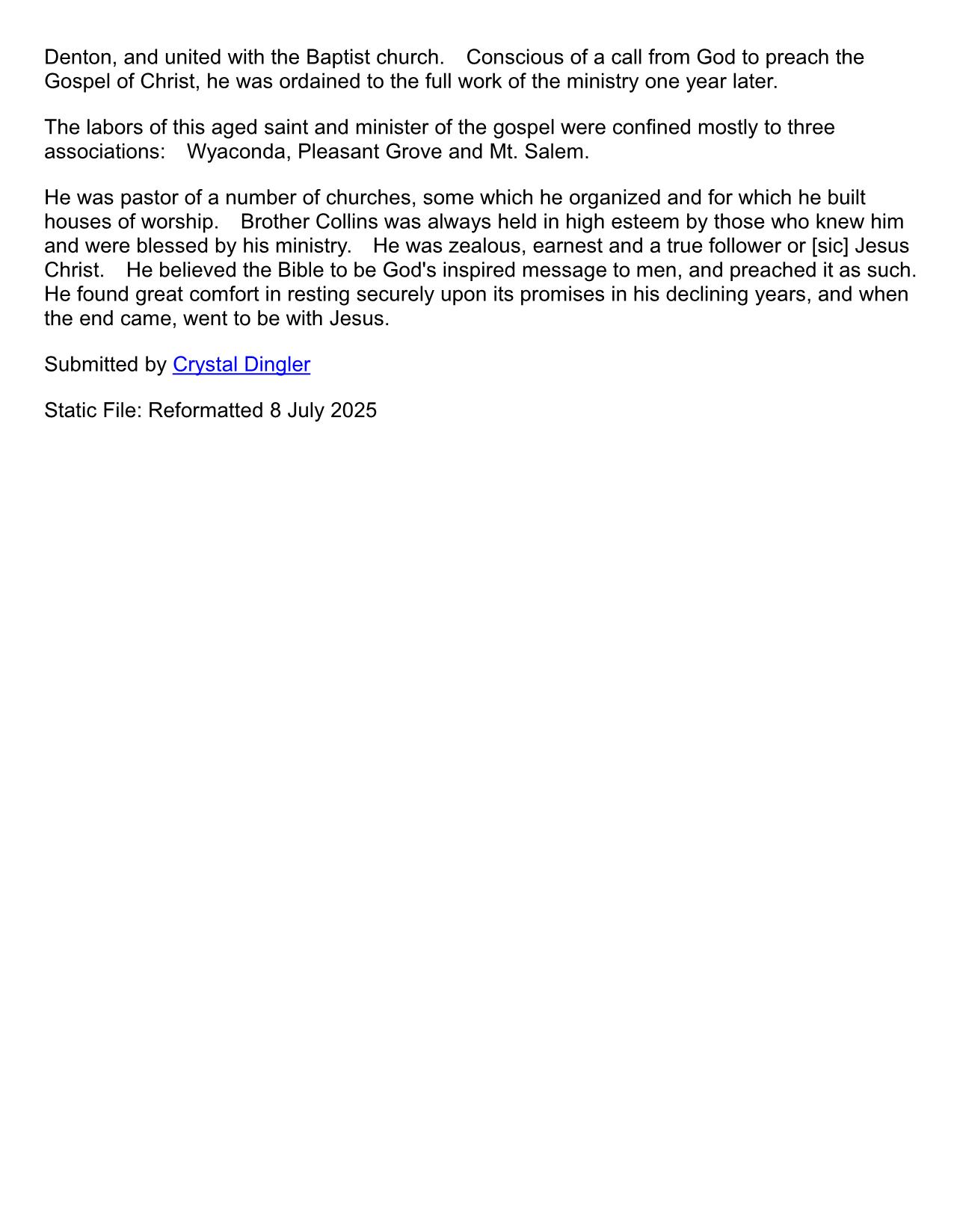 Wyaconda Baptist Association, 1914, Ten Mill Baptist